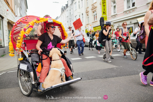 G: Wenn ich durch die Straßen von Köln fahre, werde ich natürlich auch gesehen. Aber die Mad Pride schafft Berührungen, die man auf der Straße nicht so leicht kreieren kann. Da gibt es oftmals auch negative Begegnungen.