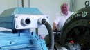 Nix ist mit Klappern und Tosen. In dem kleinen Betriebsgebäude summt es bloß ein bisschen. Nicht mal so groß wie eine Doppelgarage ist dieser Raum, der eigentlich nur einen blauen Generator und die anthrazitfarbene Turbine enthält.