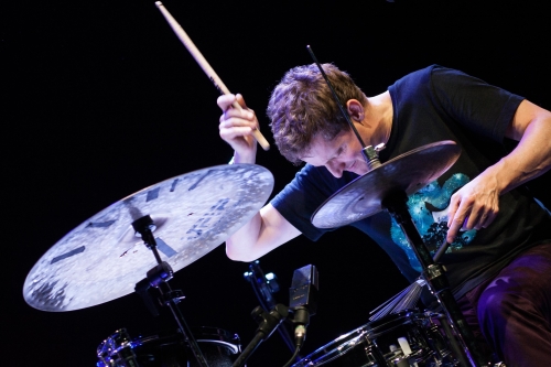 Den letzten Abend bestreiten zwei Duos, die dann auch noch als Quartett aufspielen. Neben Sebastian Gille (Sax) und Robert Landfermann (Bass) sind das Jim Black (Schlagzeug und Sampler) und Elias Stemeseder (Klavier und Synthesizer) aus Brooklyn. Wenn die an allem gezupft, gepresst, gerieben, gehämmert, geschlagen haben, sodass es eine Lust ist, dann entstehen ganze Tonlandschaften, die jeden Abend in eine Einzigartigkeit treiben, denn dabei spielen die Module verrückt. Seien Sie auf der Hut, wenn Bunky Swirl mit allen verfügbaren Instrumenten jeden einzelnen Moment manipulieren.