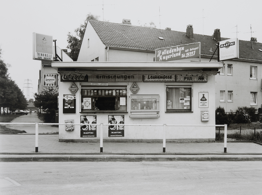 Auf diese Ausstellung musste man lange, sehr lange warten. Tata Ronkholz gehörte zu den frühen Studenten von Bernd Becher an der Düsseldorfer Kunstakademie. Ihr fotografisches Werk passt in den Kanon der Düsseldorfer Fotoschule um Gursky, Höfer und Struth und wurde schon frühzeitig bei Gruppenausstellungen berücksichtigt. Aber dann geriet es irgendwie in Vergessenheit, ohne je ganz vergessen zu sein. Mittlerweile wird es in großen Teilen vom Van Ham Art Estate in Köln betreut – und jetzt, in der Photographischen Sammlung, wird es erstmals in seinen Facetten aufgefächert, derart, dass in der Ankündigung von einer Retrospektive die Rede ist. Aber warum erst jetzt? Tata Ronkholz (1940-1997) war zunächst als Möbel- und Produktdesignerin tätig, ehe sie sich mit Mitte 30 der Fotografie zuwandte. Auch ist sie früh gestorben. Ihre Aufnahmen sind ausgesprochen unspektakulär. Sie zeigen alltägliche urbane Orte, vorwiegend Architektur, in abtastender Distanziertheit. Menschen kommen (fast) nicht vor, nur selten Autos oder Fahrräder, die Ansichten befinden sich in gleichmäßiger Helligkeit regelrecht außerhalb jeder Zeit. Dazu sind sie überwiegend schwarzweiß und kleinformatig.
