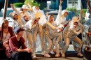 In der Produktion des Kollektivs InterFemme* konfrontiert ein wütendes Ballett aus Schattenboxern und Herrschsüchtigen das Publikum mit dem Wesen der Männlichkeit.