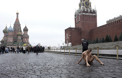 Mittwoch, 15. März: Jubiläumsjahr in Russland: Vor hundert Jahren fand die Februarrevolution statt, um dann von der bolschewistischen abgelöst worden zu werden, der Oktoberrevolution. Wer meint, das seien alte Kamellen, der hat eindeutig zu lange geschlafen. Für den Präsidenten der russischen Föderation Wladimir Putin und dem unendlich langen Rattenschwanz von Staatsgewalt, bedeutet das: alle Obacht – alles was nach Revolution riechen könnte, zu entkritisieren. Ein Andersdenker, seicht formuliert, ist der russische Aktionskünstler Pjotr Pawlenski: angespornt durch die Verhaftung von Pussy Riot im Jahr 2011, rebelliert er anhand einer radikalen Form des Körperaktionismus, wie sie sonst bei Marina Abramovic bekannt ist. Pawlenski schafft mit seiner Kunst bildgewaltige und drastische Symbole, wie den zugenähten Mund und den nackt in Stacheldraht eingewickelten Körper.