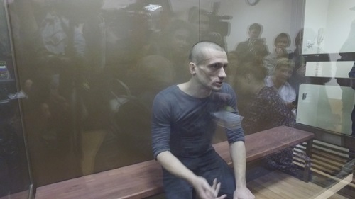 Pawlenski, der selbst von sich sagt: „Ich bringe die Situation der Bürger auf den Punkt“, erhält mit seinen Aktionen viel Aufmerksamkeit, unter anderem auch von Filmemacherin Irene Langemann. Sie stellt ihren Dokumentarfilm „Pawlenski – Der Mensch und die Macht“ im Filmforum vor und erzählt dem vollen Saal vorab, woher sie die Inspiration genommen habe. Gemeinsam mit dem Produzenten Wolfgang Bergmann verfolgt sie seit 2012 Pawlenskis Arbeit und spielt immer wieder mit dem Gedanken, etwas über ihn zu machen: „Im August 2015 habe ich ihn über Facebook kontaktiert und ein Tag später hatten wir unser erstes Skypegespräch. Er war sehr offen und interessiert und sagte: Kommen Sie! Ich bin dann nach Petersburg gereist und habe drei Tage mit ihm gedreht. Sechs Wochen nachdem ich den ersten Dreh hatte, kam Pjotr Pawlenski nach seiner letzten, fast selbstmörderischen Aktion ins Gefängnis und da stand ich vor der Tatsache, dass ich mit jemanden einen Film machen musste, der nicht da ist. Und das war die größte Herausforderung.“