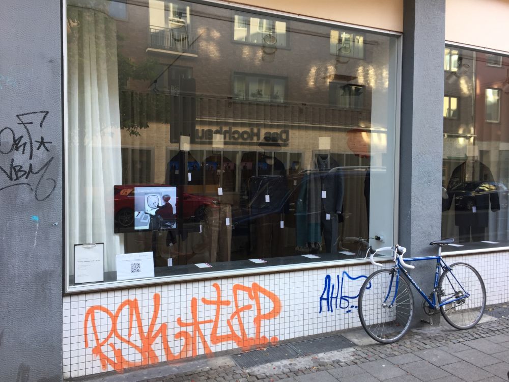 Farkas ist eine von 13 internationalen (Medien-)Künstlern, die aktuell das Belgische Viertel mit noch mehr Leben füllen, als es ohnehin schon zu bieten hat. Der Urban GIF Parcour ist ein Sonderformat des Film Festival Cologne und findet dieses Jahr zum ersten Mal statt. Zu sehen gibt es rund 60 GIFs in 30 verschiedenen Läden, von schicken Modeboutiquen über Cafés bis hin zur alt eingesessenen Bäckerei.