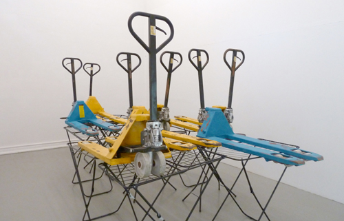 Da steht eine Ansammlung von Gabelstaplern am hinteren Ende des Ausstellungsraumes, eine riesige Baustellenlaterne liegt umgekippt im vorderen Bereich auf dem Boden. Eher unscheinbar wirkt dagegen das Waschbecken, das an der linken Wand des Raumes angebracht ist. Bei näherer Betrachtung entdeckt man, dass es vier Kalt- und nur einen Warm-Wasserhahn hat. Mit seiner Arbeit „If the Stones Could Talk“ kreiert der 1978 auf Kuba geborene, in Oslo lebende Künstler Juan Andrés Milanes Benito eine neue, in sich kongruente Welt. Um die Zusammenhänge zu verstehen, muss man sich ganz auf seine Kunst einlassen.