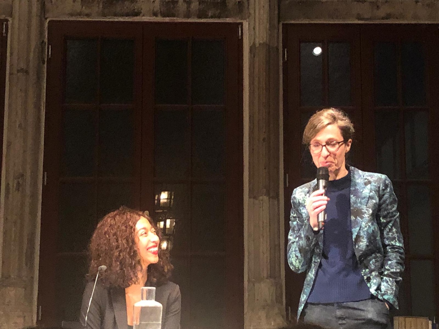 Anders als Nothofer, deren warmer, starker Stimme man anhört, dass sie Erfahrung im Vortragen hat, verzauberte Kálnay das Publikum mit ihrer sehr zarten und besonderen Art des Vorlesens – und natürlich vor allem mit ihren poetischen Worten. Die bildhafte Sprache und die fliegenden Worte schaffen ein ganzes Universum in einem Schrankes. Und man möchte mehr erfahren, über den Bewohner des Schranks, über Nina, die versprochen hat wiederzukommen und über die anderen Mitbewohner. Wie Kálnay erwähnte, wird im Buch selten erklärt, warum die Figuren handeln, wie sie handeln, aber vielleicht spielt das auch gar keine so große Rolle. Man möchte ihr einfach weiter zuhören, dieser zarten Stimme, die einen mit Worten auf eine Wolke aus Poesie zu heben scheint.