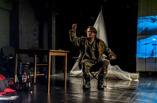 Leky, der zuvor mit dem Regisseur Gockel eine riskante Reise in den Kongo unternommen hat und diese über ein Video dokumentierte, ist ein charismatischer Performer in dieser One-Man-Show, mit seinen Reiseerlebnissen und Reflexionen, mit einem prall gefüllten Seesack und dem Film, aus dem er immer wieder Müller-Texte nachspricht. Ein Theater-Abenteuer im Dickicht des Neokolonialismus, exotischer Faszination und deutscher Schuld: der Weg Müllers vom einfachen Soldaten zum monströsen Medienstar aus dem militärischem „Kommando 52“. Im Wechselgespräch ahmt Leky auch Martin Kobler nach, der die Friedensmission der Vereinten Nationen im Ostkongo leitet: „die größte, teuerste und erfolgloseste UN-Mission aller Zeiten“. „Das Deutsche Wesen“ zur Genesung der Welt – eher verwirrend. Und Leky bindet das Publikum immer wieder mit ein.