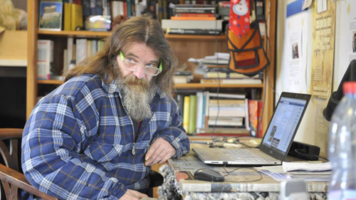 „Ich habe ja, wie einige wissen, vor zehn Jahren, in einer Brache, die schon 20 Jahre leer stand eingegriffen und dort den Besen sprechen lassen. In zehn Jahren sind 10.000 qm städtisch vermülltes Gelände umgewandelt worden. Ich kann aus diesen zehn Jahren berichten von jeder Menge teuren Übergriffen seitens der Stadtverwaltung, also Behinderungen dieser Tätigkeit, keiner Förderung. Das letzte Beispiel jetzt: Man hat mir eine Unterschrift abgepresst, dass ich am 30. April – was ich auch immer schon angekündigt habe – das Gelände verlasse. Und jetzt gab es einen Polizeieinsatz gegen eine meiner Bauten, mit dem ich weiterwandern wollte. Durch diese Unmöglichkeit, mit der Verwaltung zu kommunizieren, sind zwei Tage vor Weiberfastnacht um halb 7 insgesamt 80 Personen auf dem Eifelwall aufgelaufen, die alle bezahlt waren. Davon waren 65 Polizeibeamte, fünfmal Gebäudewirtschaft, fünfmal Bauaufsichtsamt und eine Zimmerei, die rekrutiert wurde, fünf Dachbalken bei mir abzusägen. (…) Die greifen bei einem stadtbekannten Künstler, der sich berufen fühlt, Landschaft umzuwandeln, in dieser Form ein. Jetzt ist das ganze Gelände wie schon mal sieben Monate vorher mit Hundestaffeln, mit Wachleuten bewacht. Das kostet im Monat – so habe ich von den Wachleuten gehört – über 30.000 Euro. Also wir können ganz klar sehen, wo unsere Gesellschaft bereit ist, Geld zu investieren.“ Bewacht würden damit leerstehende Garagen. Weltweiten Entwicklungen in der Stadtpolitik hinke Köln schon seit den 70er Jahren weit hinterher und es brauche einen „richtig starken Weckruf“.